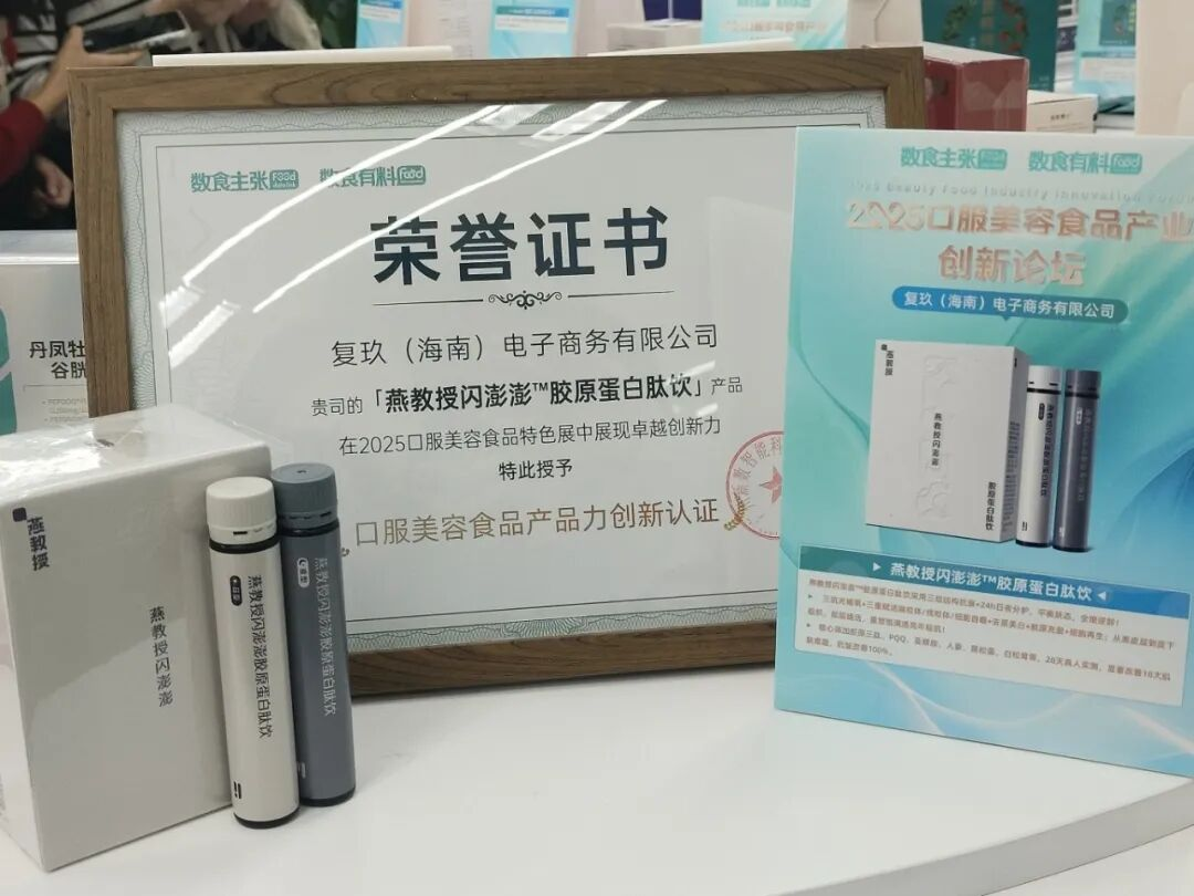 2025年11月21日,由食品行業領先數據服務平臺FDL數食主張與FDL數食有料聯合主辦的“2025口服美容食品產業創新論壇”在行業矚目中圓滿落幕。在這場匯聚行業口服美容領域頂尖專家、品牌代表及科研精英的盛會上,燕教授旗下明星產品閃澎澎膠原蛋白肽飲憑借卓越的產品力與創新價值脫穎而出,成功榮獲“2025年口服美容產品力創新認證”,成為了焦點。