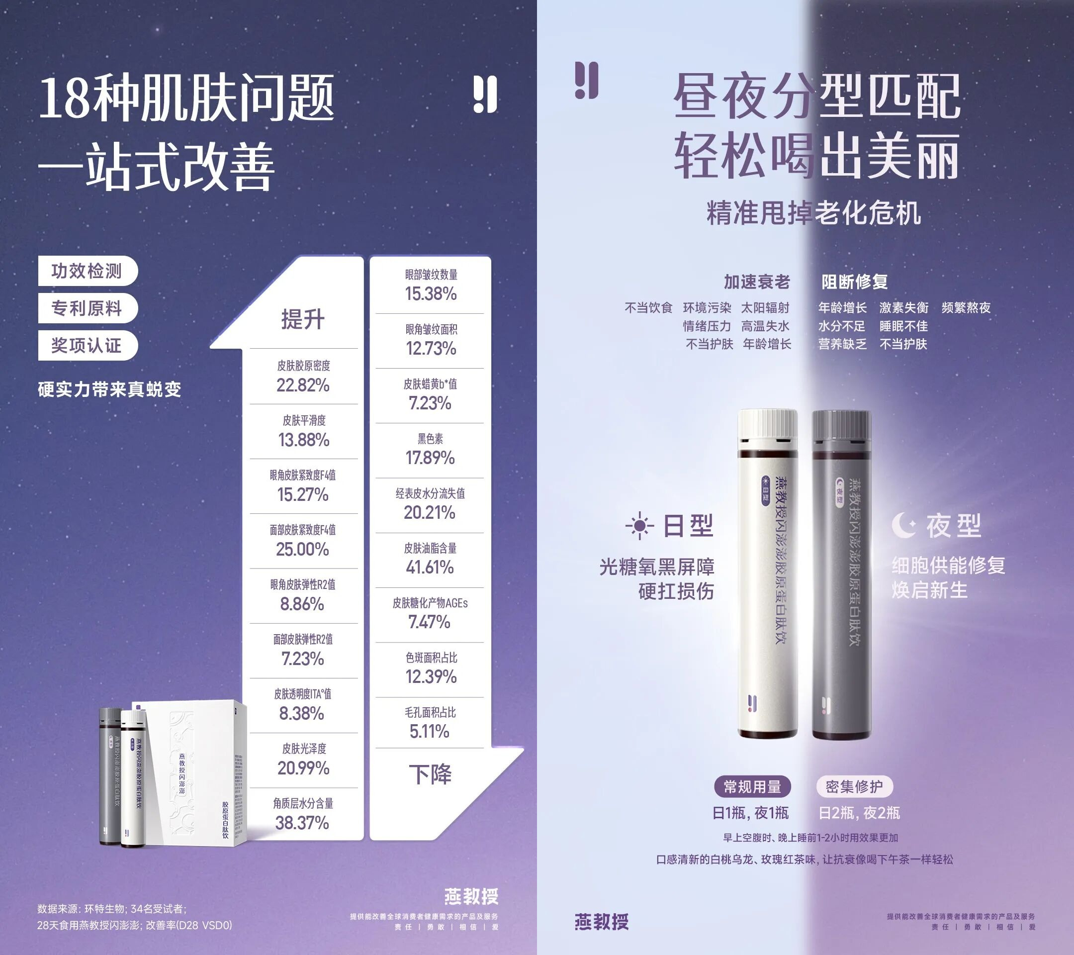 燕教授品牌自成立以來,始終秉持“責任、勇敢、相信、愛”的理念,致力于為消費者提供能改善健康需求的產品及服務。此次閃澎澎膠原蛋白肽飲榮獲“2025年口服美容產品力創新認證”,是品牌在美容健康領域的又一次重大突破。